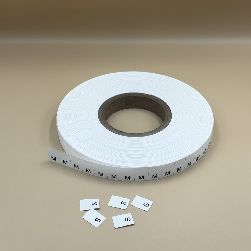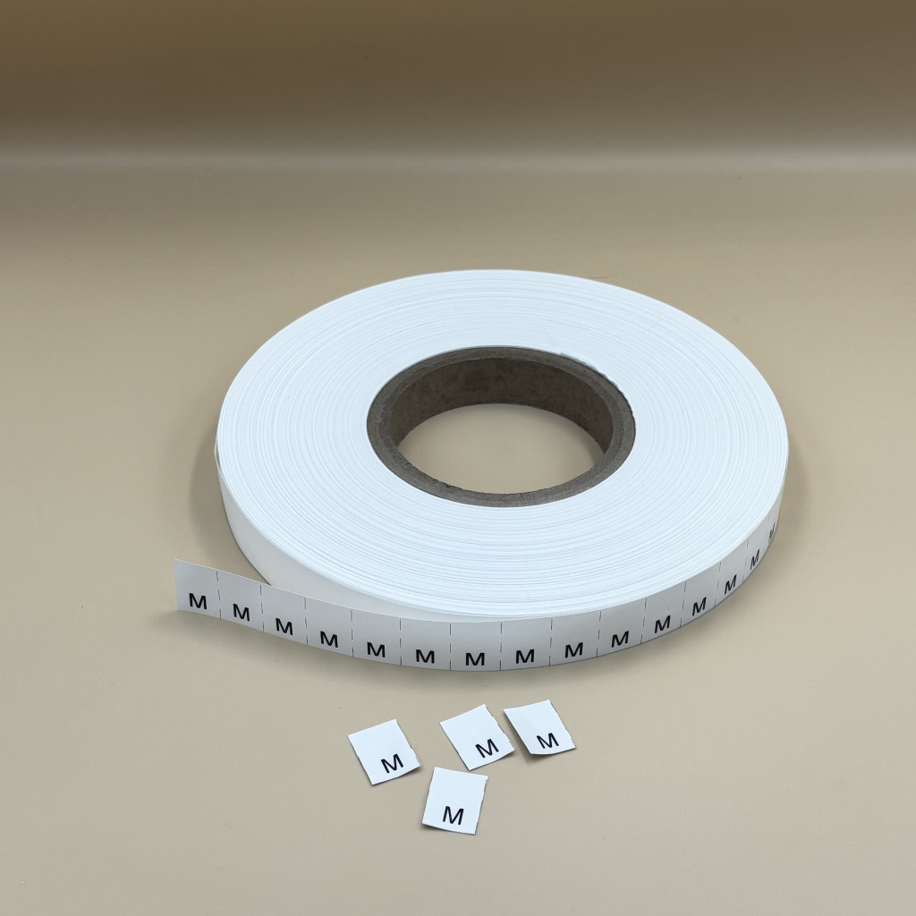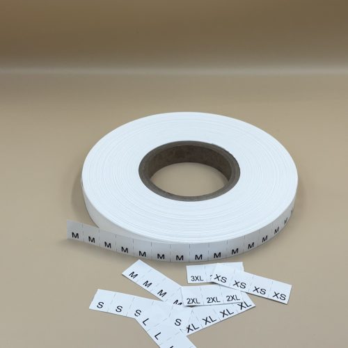 Bérnyomtatás - TEXTIL bevarrható műanyag címkére - POLYESTER - MÉRETJELZŐ címke, XS, S, M, L, XL, XXL