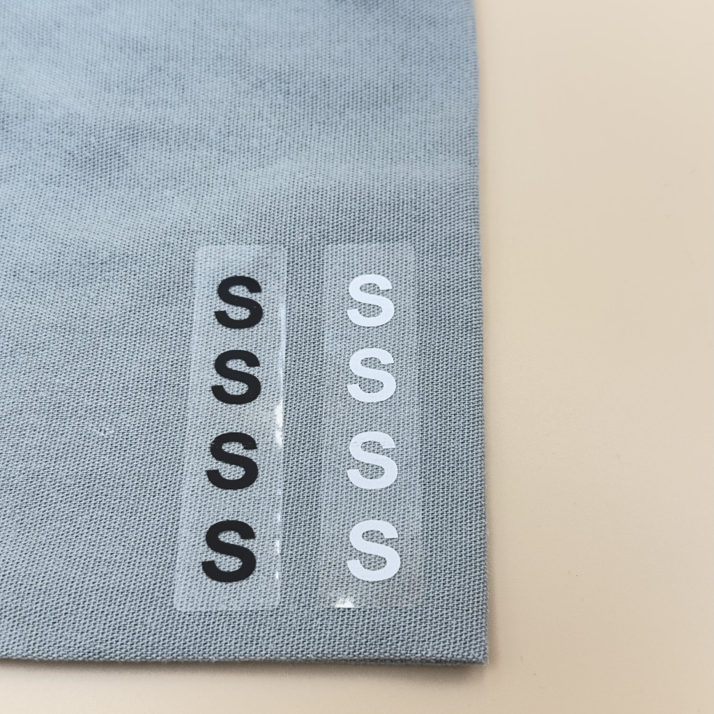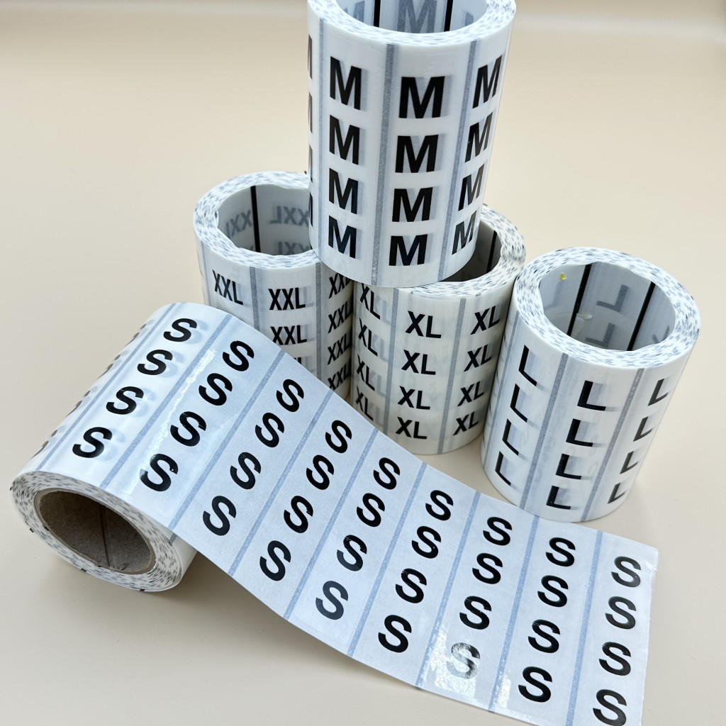 MÉRETJELZŐ 80x20mm átlátszó műanyag címke 500 db/40gy (XS,S,M,L,XL,2XL,3XL) - FEKETE nyomat